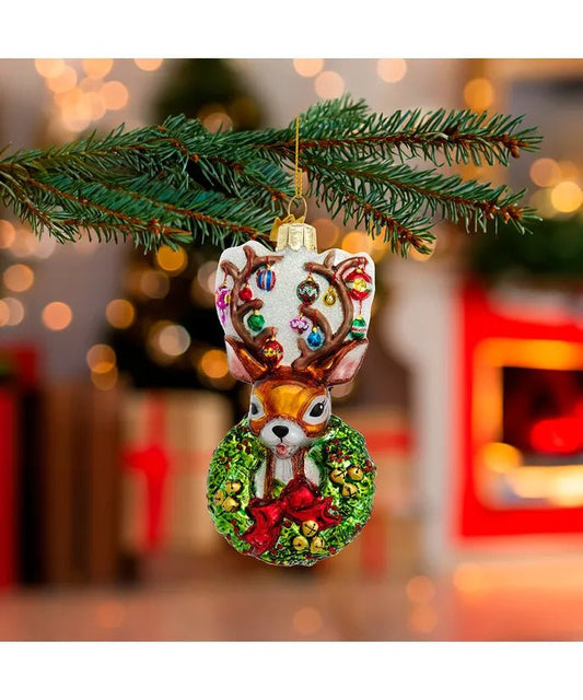 4.5-Inch Traditional Deer with Wreath Glass Ornament – Noble Gems
