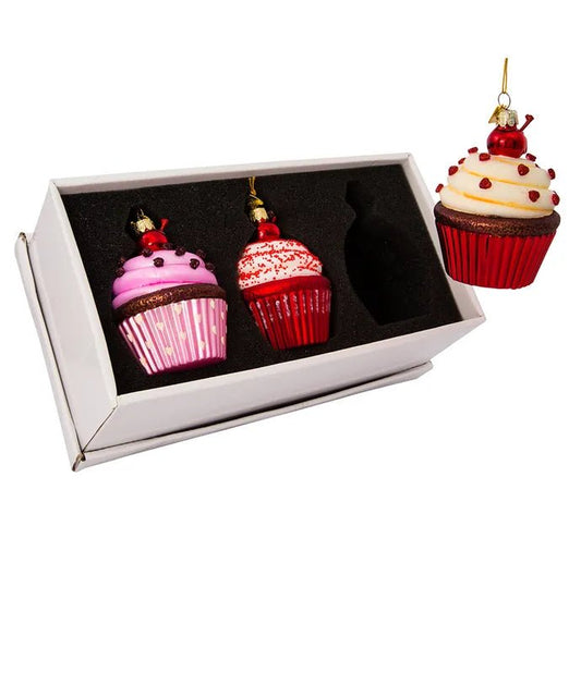 Cupcake Glass Ornament Set – 3.65-Inch Noble Gems (3 Pieces)