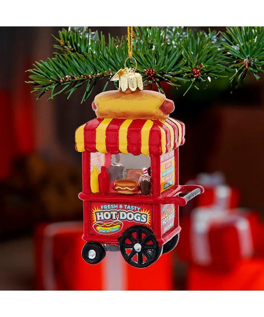 Hot Dog Cart Glass Ornament – 4.25-Inch Noble Gems