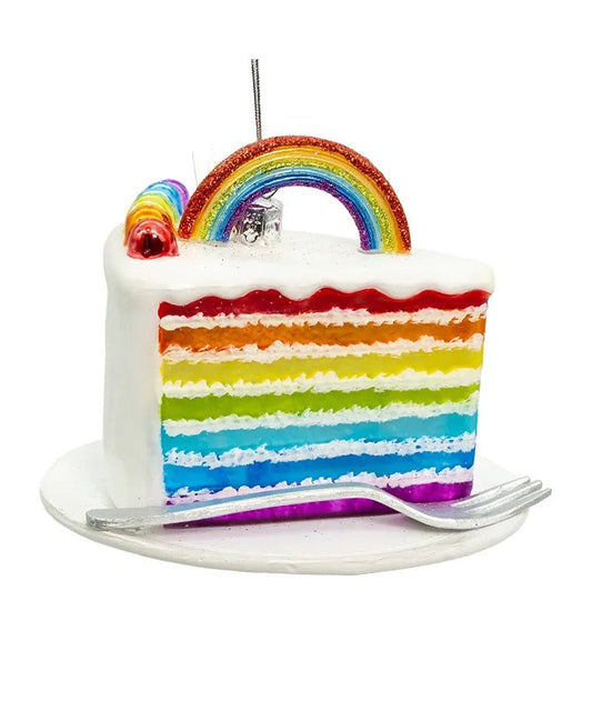 Rainbow Cake Slice Glass Ornament – 4.5-Inch Noble Gems