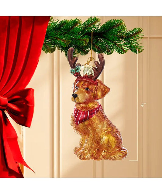 Golden Retriever with Antlers Glass Ornament – Noble Gems
