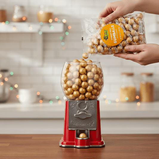 Gold Shimmer Gumballs 1 Inch – Bulk 120 Count – Mixed Fruit Flavor Bubble Gum Balls for Gumball Machine & Classy Party Buffets