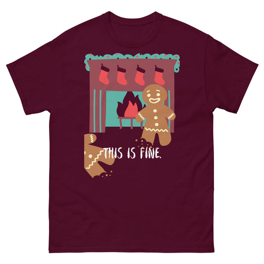 This Is Fine Gingerbread Christmas T-Shirt – Gold or Maroon