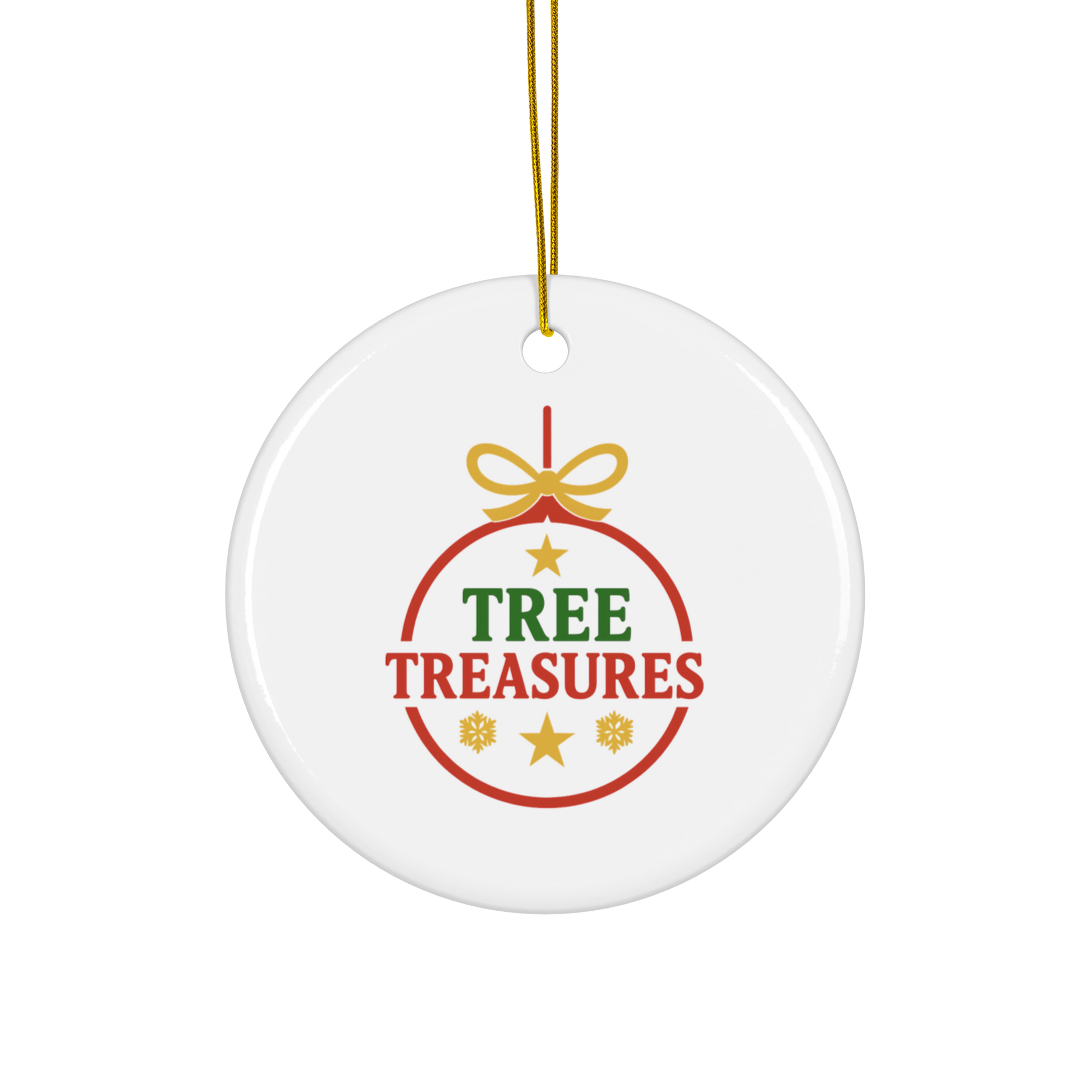 4️⃣ We print and finish your ornament in full color on both sides, with a gleaming gold hanging cord.