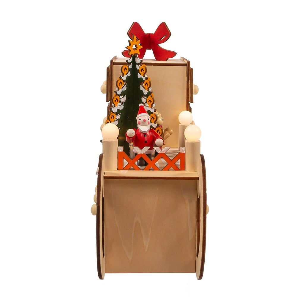Expertly crafted from wood, this advent calendar combines old-world charm with modern LED warmth. A delightful Christmas village scene glows under six warm white lights, featuring Santa in his sleigh, cheerful reindeer, and a sparkling holiday tree.